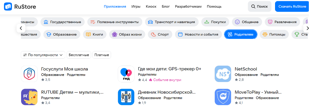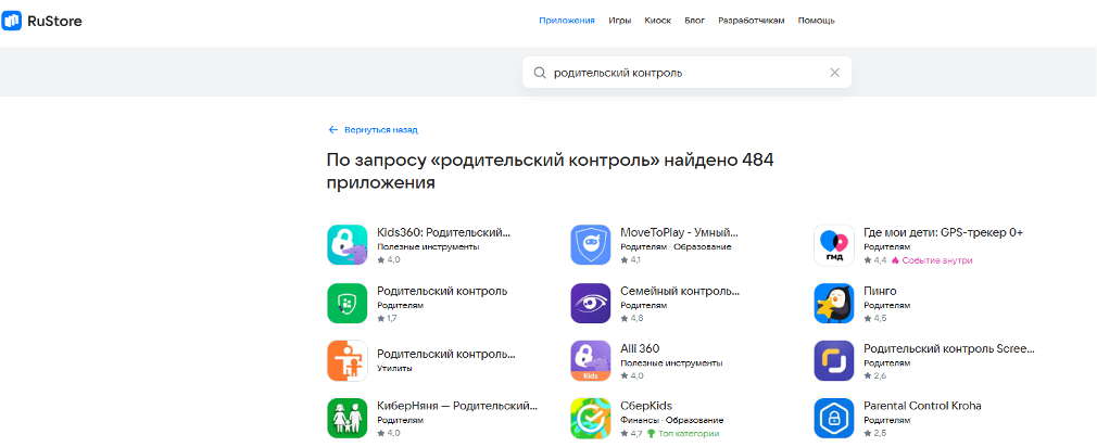 MoveToPlay занимает 2 место в RuStore по запросу “родительский контроль”